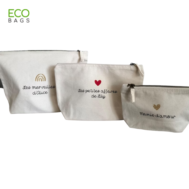 กระเป๋าเครื่องสำอางผ้าใบคอตตอนแบบปิดมีซิป2023ดีไซน์ตัวหนังสือ