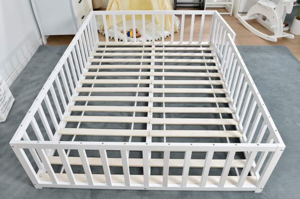 เตียงนอนพื้นแบบมอนเตสซอรี่ ดีไซน์ทันสมัยยอดนิยมปี 2023 ขนาดใหญ่ พร้อมแผ่นไม้ระแนง วัสดุไม้ ใช้ได้ทั้งห้องนอนและห้องนั่งเล่น Lepinkids