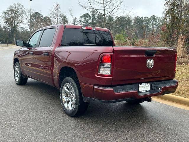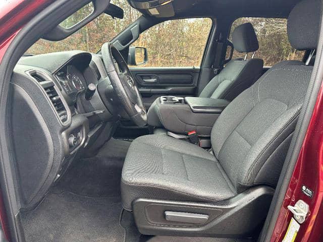 รถแรม 1500 รุ่นเทรดส์แมน เทอร์โบ ปี 2023 พวงมาลัยซ้าย ภายในสีเข้ม เกียร์อัตโนมัติ พร้อมหลังคาซันรูฟแบบพาโนรามาและเบาะผ้า