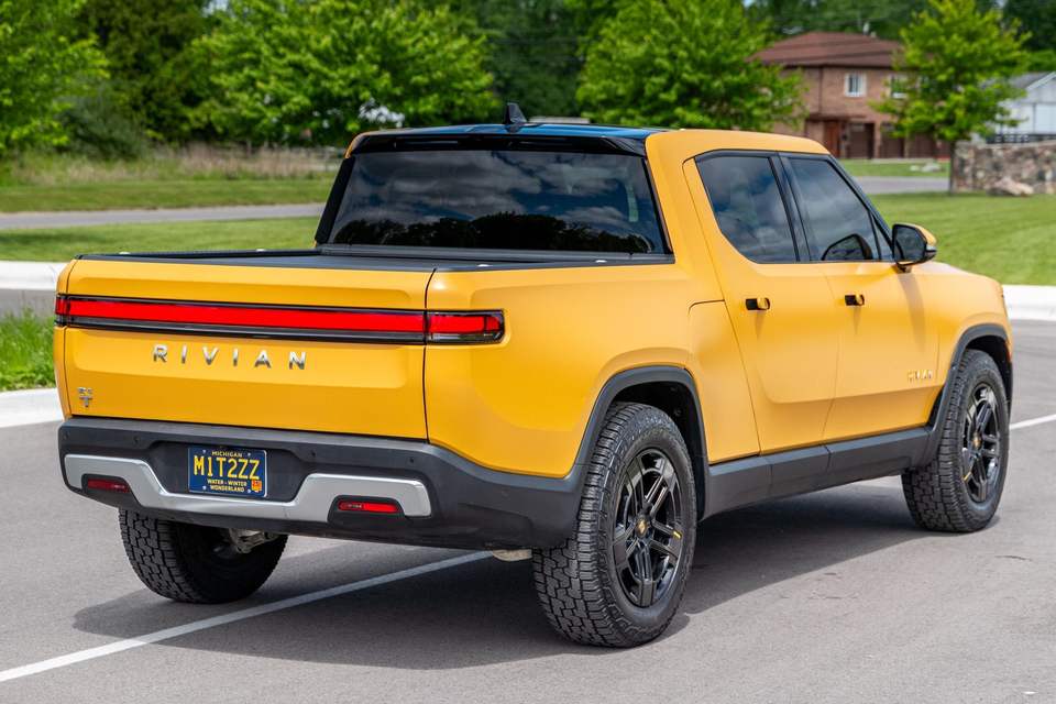 2023 rivian รุ่นผจญภัย R1T Quad-Motor AWD รถปิคอัพแบตเตอรี่ลิเธียมขนาดใหญ่เข็มทิศสีเหลืองเกียร์อัตโนมัติ R20หนัง