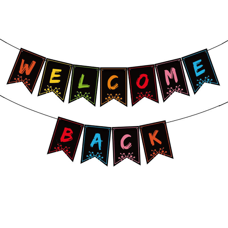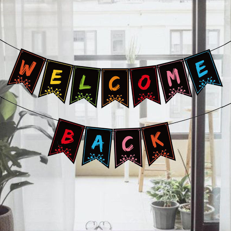 2023ฤดูกาลโรงเรียนกลับสู่ฤดูกาลโรงเรียนของตกแต่งงานปาร์ตี้แอปเปิ้ลสีแดงดอกไม้สีต้อนรับกลับดึงธง