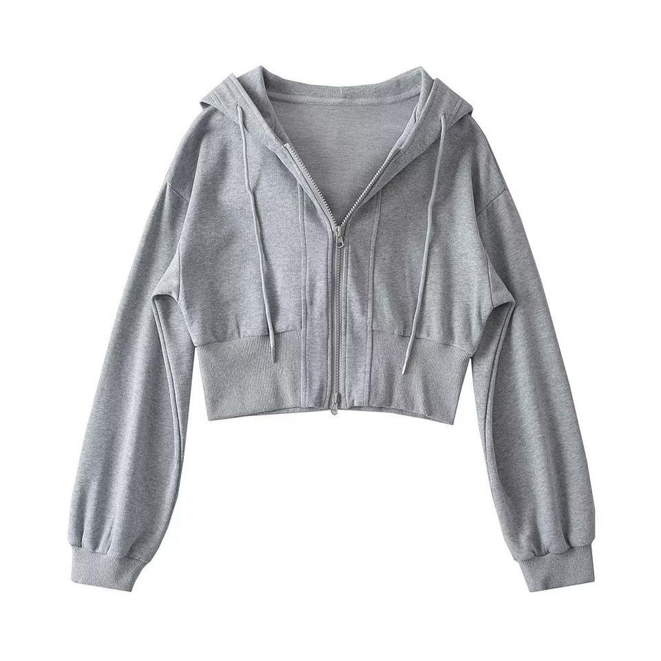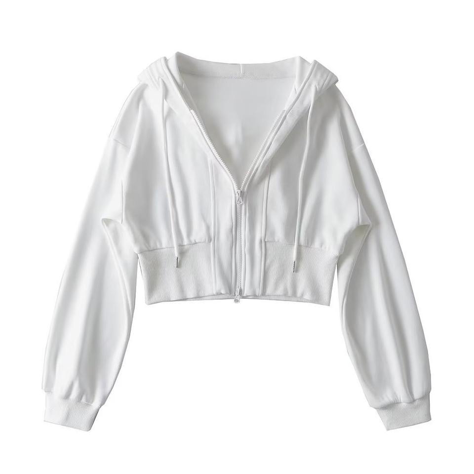 เสื้อสเวตเตอร์ผ้าฝ้ายออร์แกนิกสำหรับผู้หญิงเสื้อครอปมีฮู้ดเอวยางยืดสำหรับใส่ออกกำลังกายยิมฤดูใบไม้ผลิ2023
