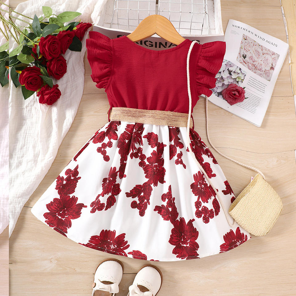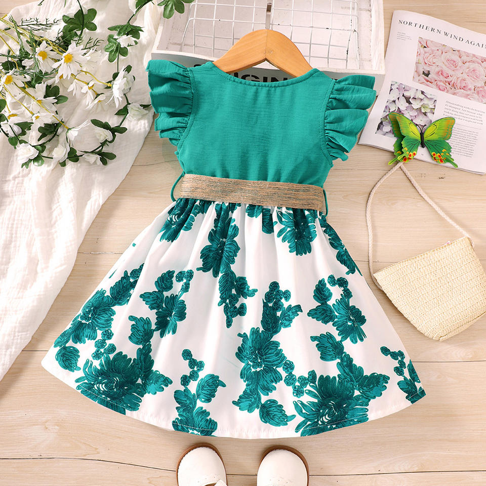 ชุดเดรสเจ้าหญิงแฟชั่นฤดูร้อนสำหรับเด็กผู้หญิง,ชุดเดรสเด็กแบบเย็บติดลายดอกไม้คอกลมแขนจับจีบชุดเดรสเด็กขายส่งปี2023