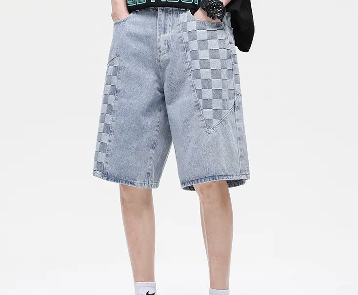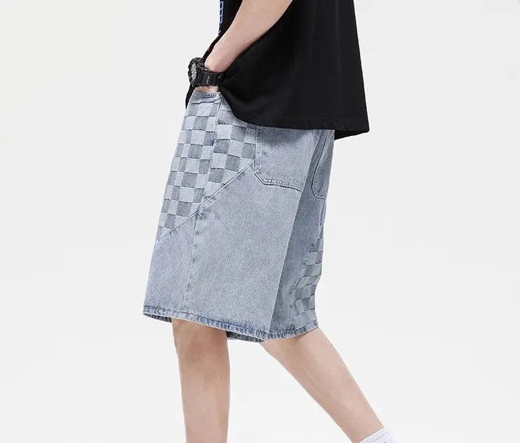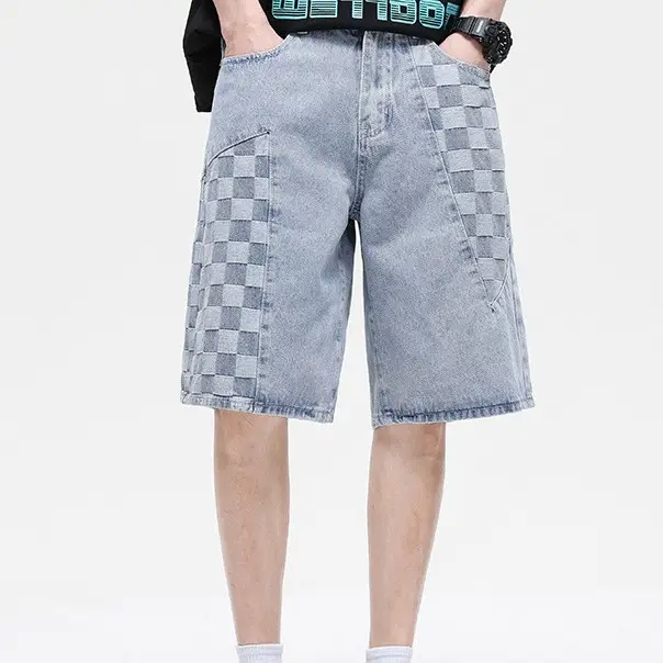 กางเกงยีนส์ขาตรงสำหรับผู้ชายกางเกงยีนส์ขาตรงลายสก๊อตแฟชั่นใหม่2023ฤดูร้อน