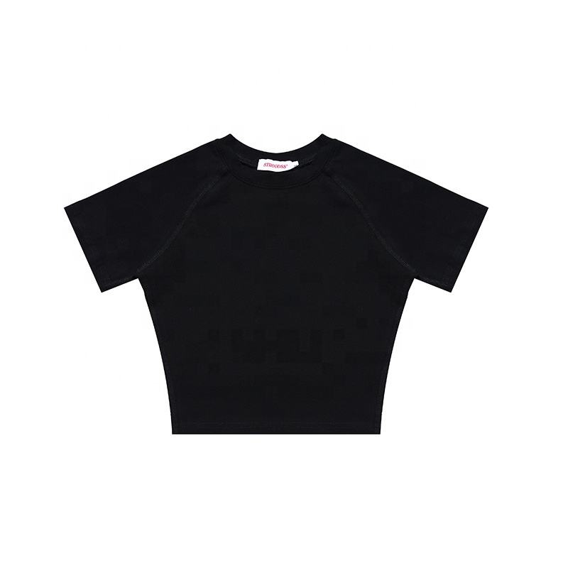 เสื้อครอปท็อปผู้หญิงฤดูร้อน 2023 ขายส่ง ผ้าคอตตอนเจอร์ซีย์เนื้อนุ่ม สกรีนโลโก้ได้ แขนเสื้อแบบแร็กแลน สีขาว คอกลม สไตล์เกาหลี น้ำหนัก 210 กรัม