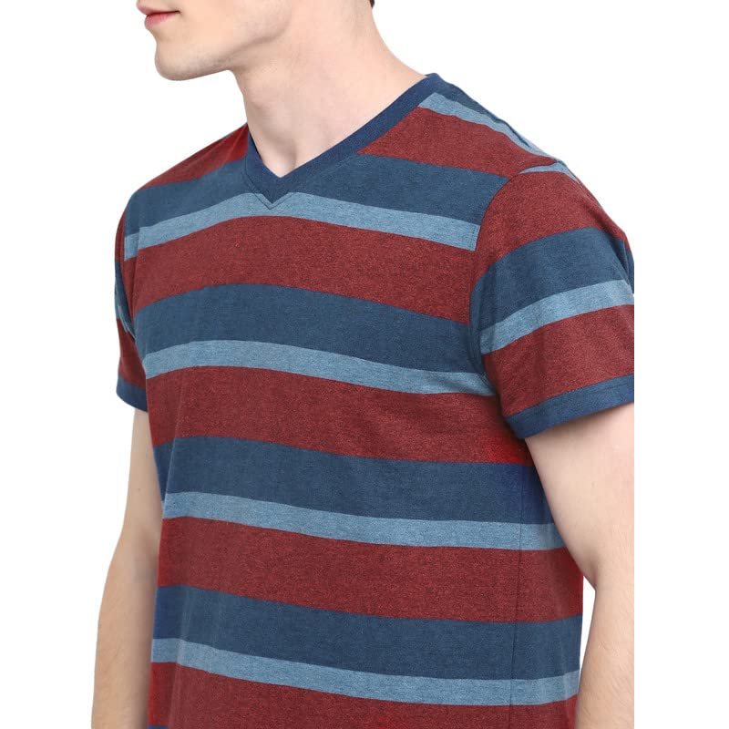 เสื้อยืดลายทางสำหรับผู้ชายเสื้อทีเชิ๊ตแขนสั้นคอวีเข้ารูปแบบลำลองสำหรับ2023