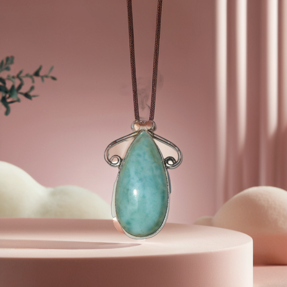 สร้อยคอจี้2023ลาริมาร์สีเขียวของผู้ชายที่กำลังมาแรงทำด้วยมือการตั้งค่าฝาอัญมณีเงินสเตอร์ลิงแบบไม่เหมือนใคร