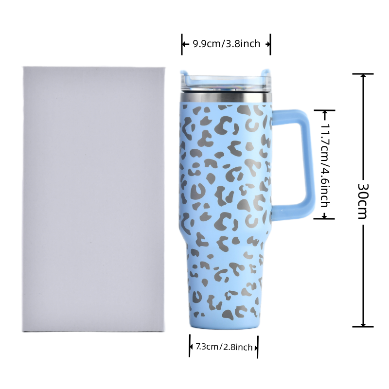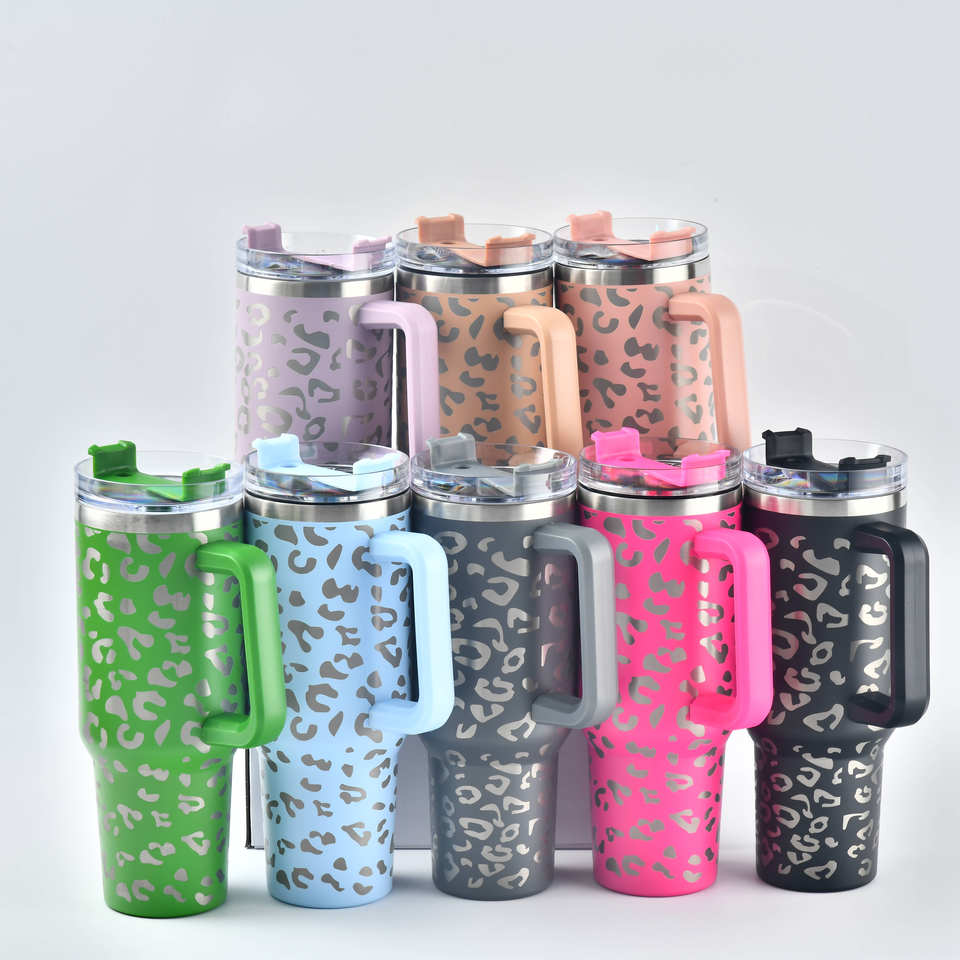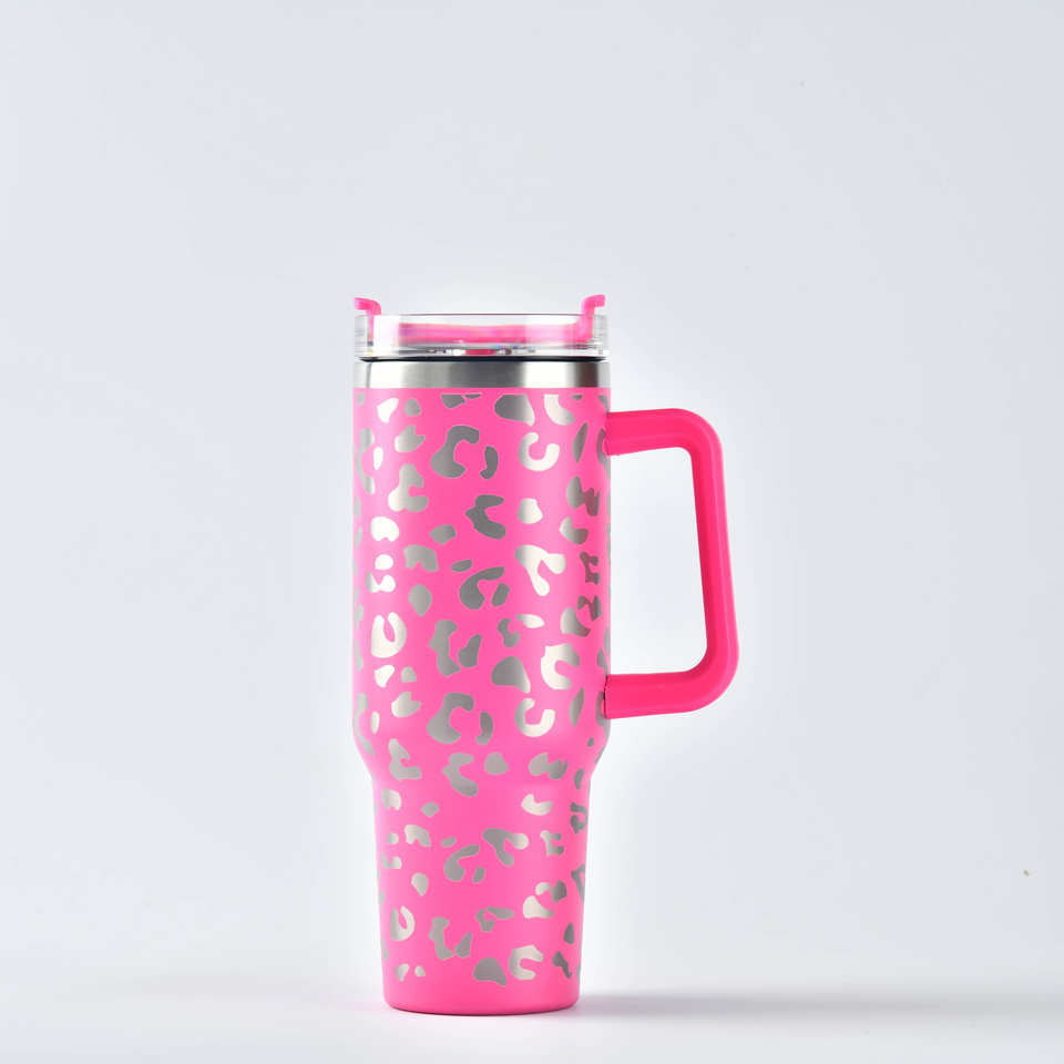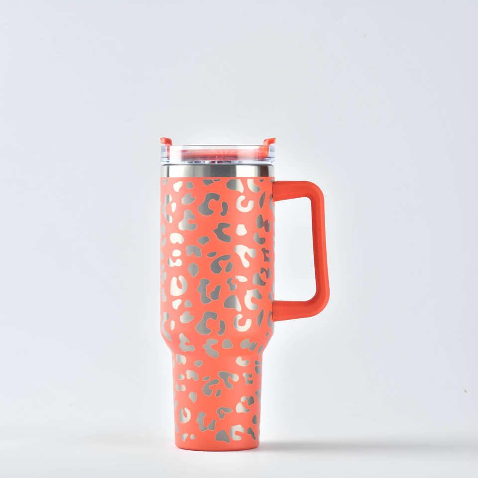 2023 US Warehouse Travel Style 40 oz 1.0 Version Leopard Stainless Steel Car Cup Beer Cup Tumbler With Handle