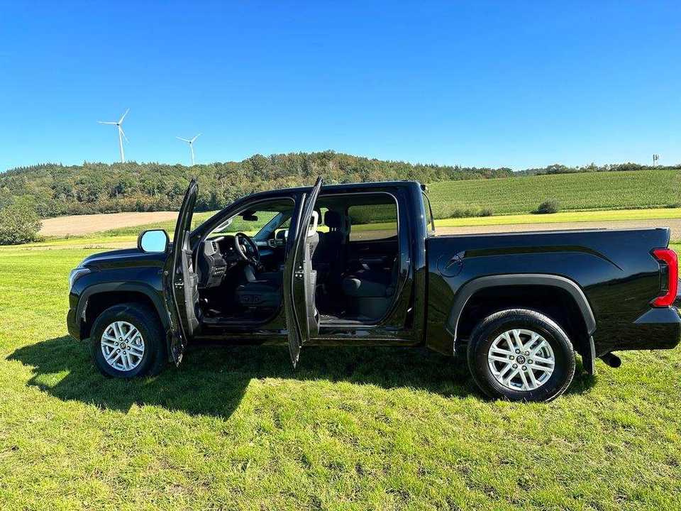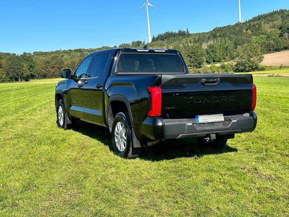 รถกระบะโตโยต้า ทุนดรา สีดำ ปี 2023 มือสอง ขับเคลื่อน 4 ล้อ ระบบขับเคลื่อนอัตโนมัติ เบาะหนัง ระบบควบคุมความเร็วอัตโนมัติ เกียร์อัตโนมัติ 6 สูบ กล้องมองหลัง 360 องศา ไฟ LED