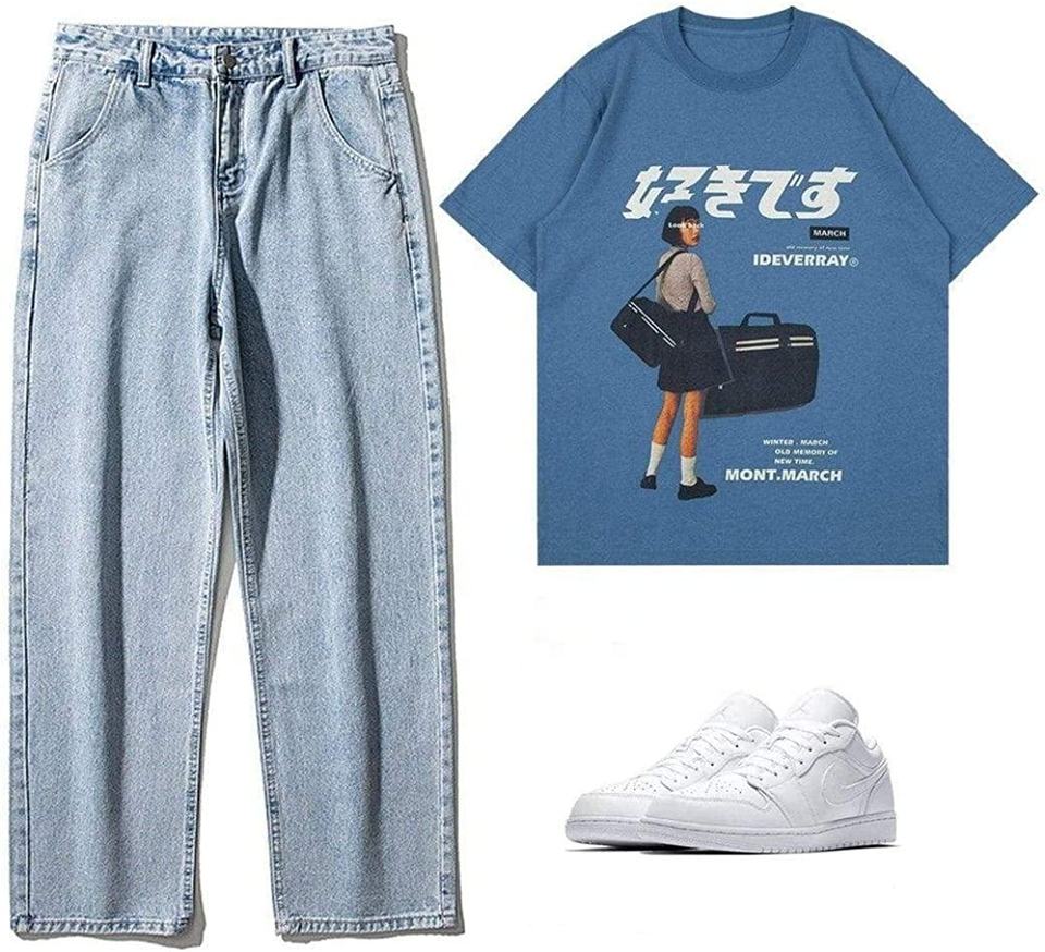 2023เสื้อโอเวอร์ไซส์วินเทจใส่ได้ทั้งชายและหญิงเสื้อสไตล์ฮาราจูกุสไตล์ลำลองพิมพ์ลายฮิปสเตอร์พลัสไซส์