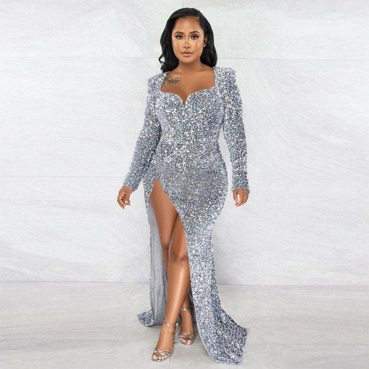 ชุดเดรสราตรียาวพิเศษสำหรับผู้หญิง,ชุดเดรสงานพรอมชุดเดรสราตรีปักเลื่อมหรูหราปี2023