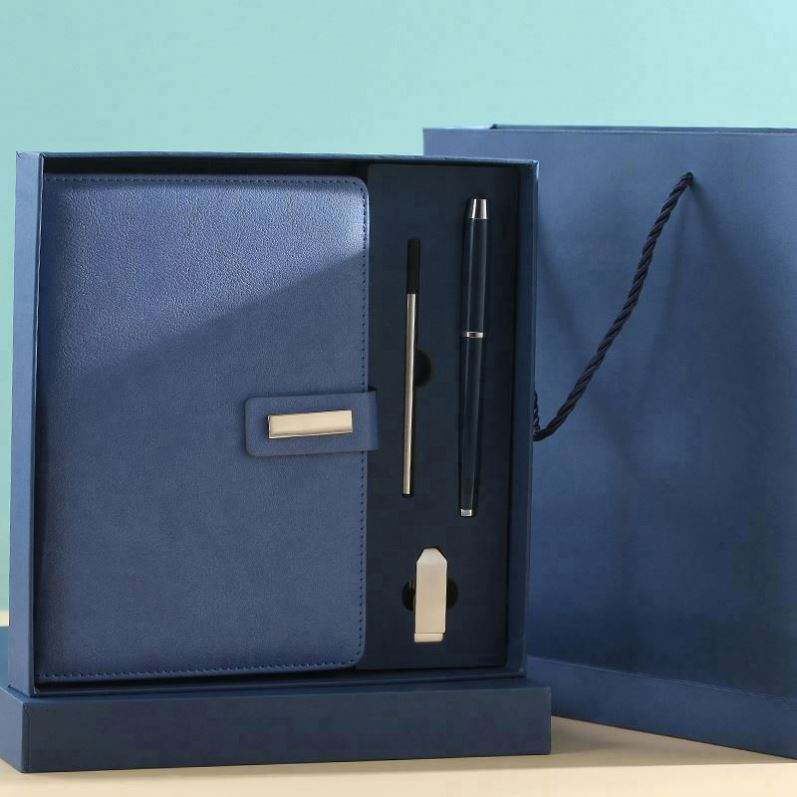 สมุดโน้ตปกแข็งหนัง PU คุณภาพสูง A5 ปี 2024 2025 ปรับแต่งได้ ชุดของขวัญธุรกิจสุดหรู 4 ชิ้นในชุดเดียว