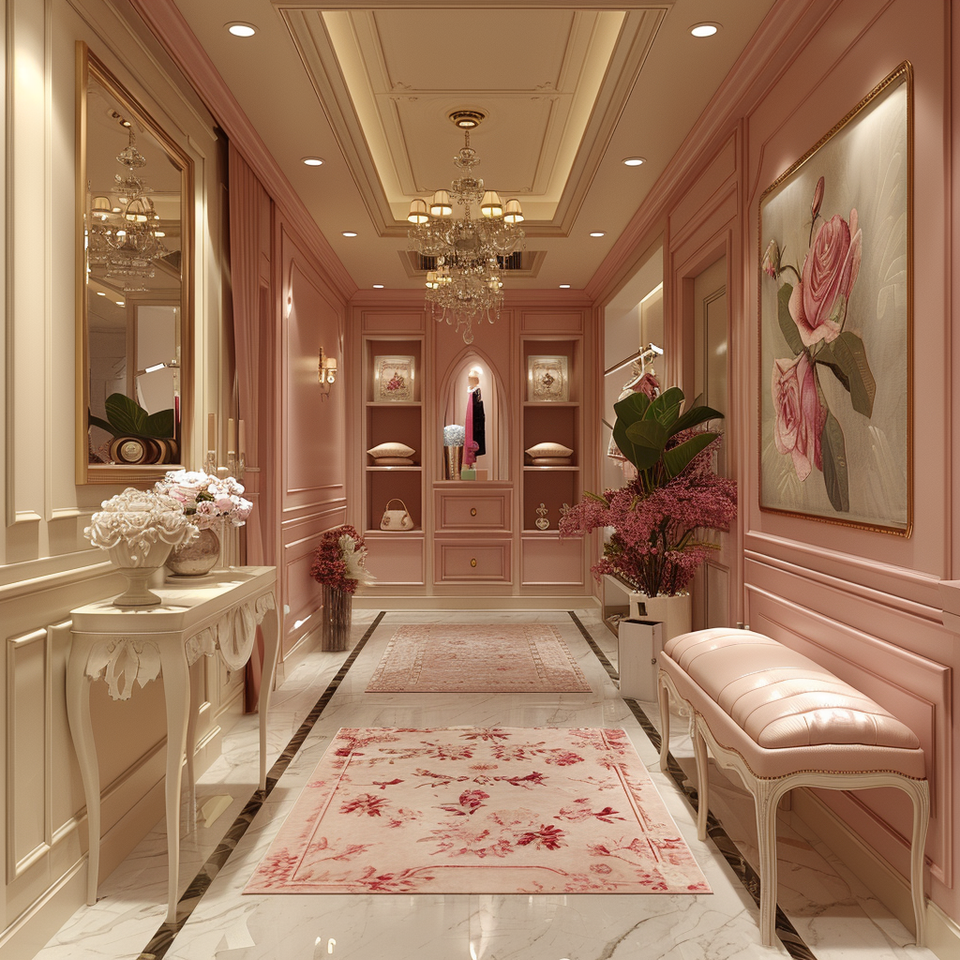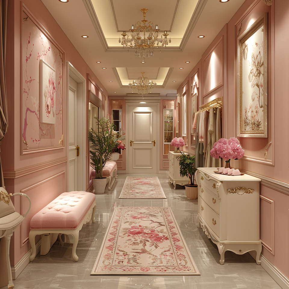 2024 Ai ที่สร้างสรรค์หรูหราสง่างามได้รับแรงบันดาลใจจากฝรั่งเศสเฟอร์นิเจอร์ห้องนอนสีชมพูที่มีความซับซ้อนของตกแต่งบ้านทางเดิน