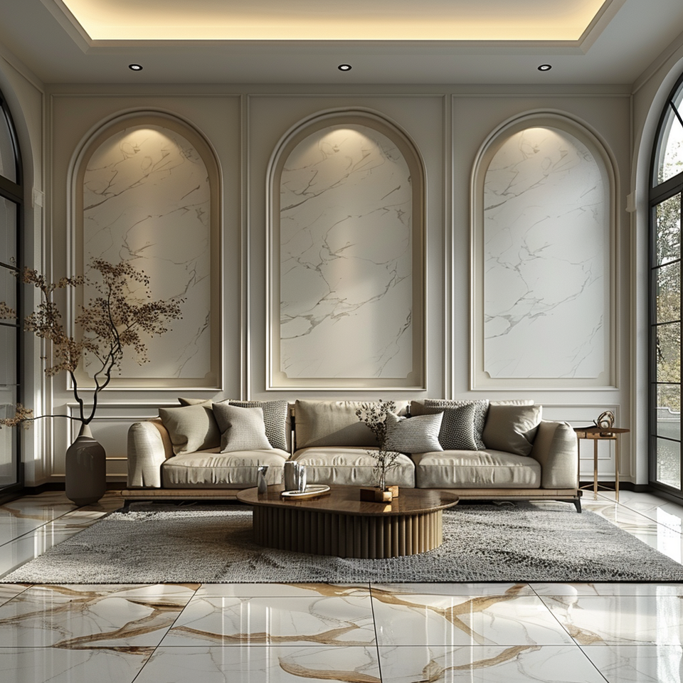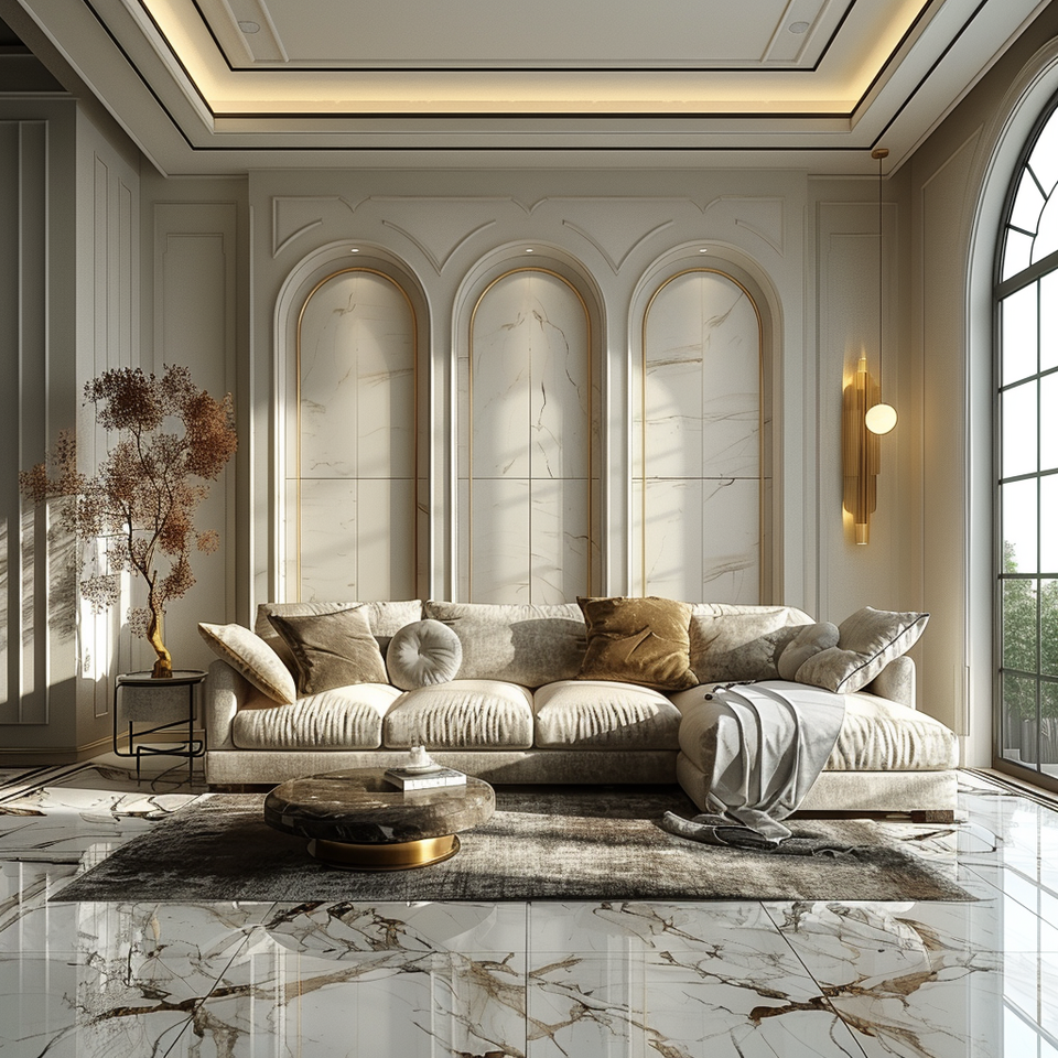 บริการเรนเดอร์3D สีเบจคุณภาพสูง2024 Ai สำหรับเฟอร์นิเจอร์สไตล์ฝรั่งเศสแนวคลาสสิกสมัยใหม่สำหรับห้องนั่งเล่น