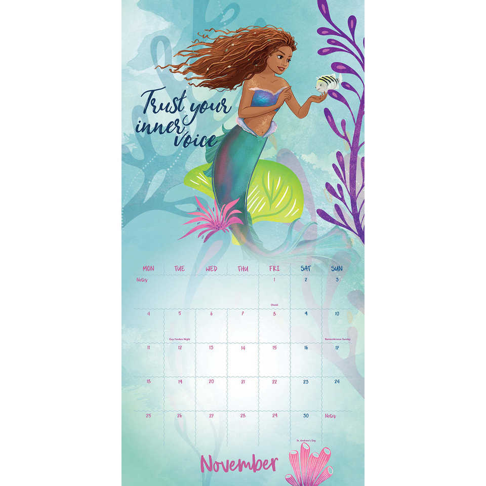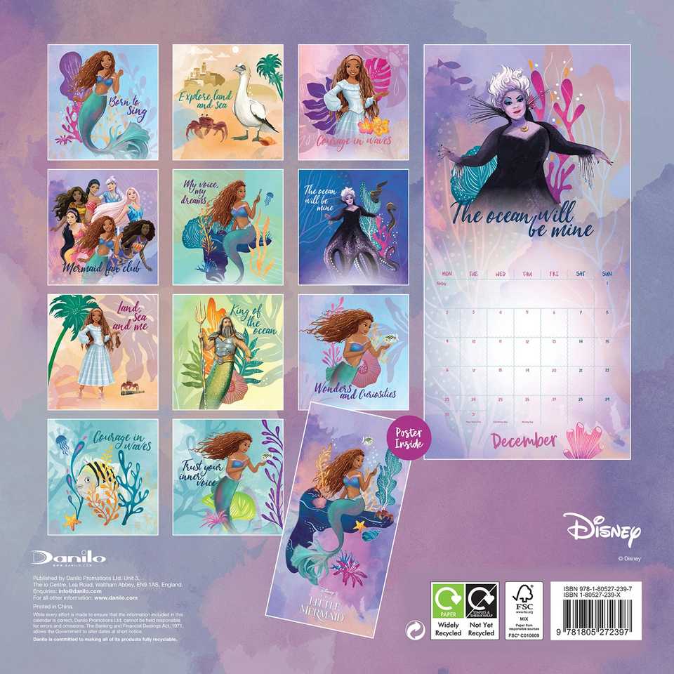 ปฏิทินติดผนังคริสต์มาสปี 2024 แอเรียล เดอะ ลิตเติ้ล เมอร์เมด พร้อมโปสเตอร์ขนาดเล็ก