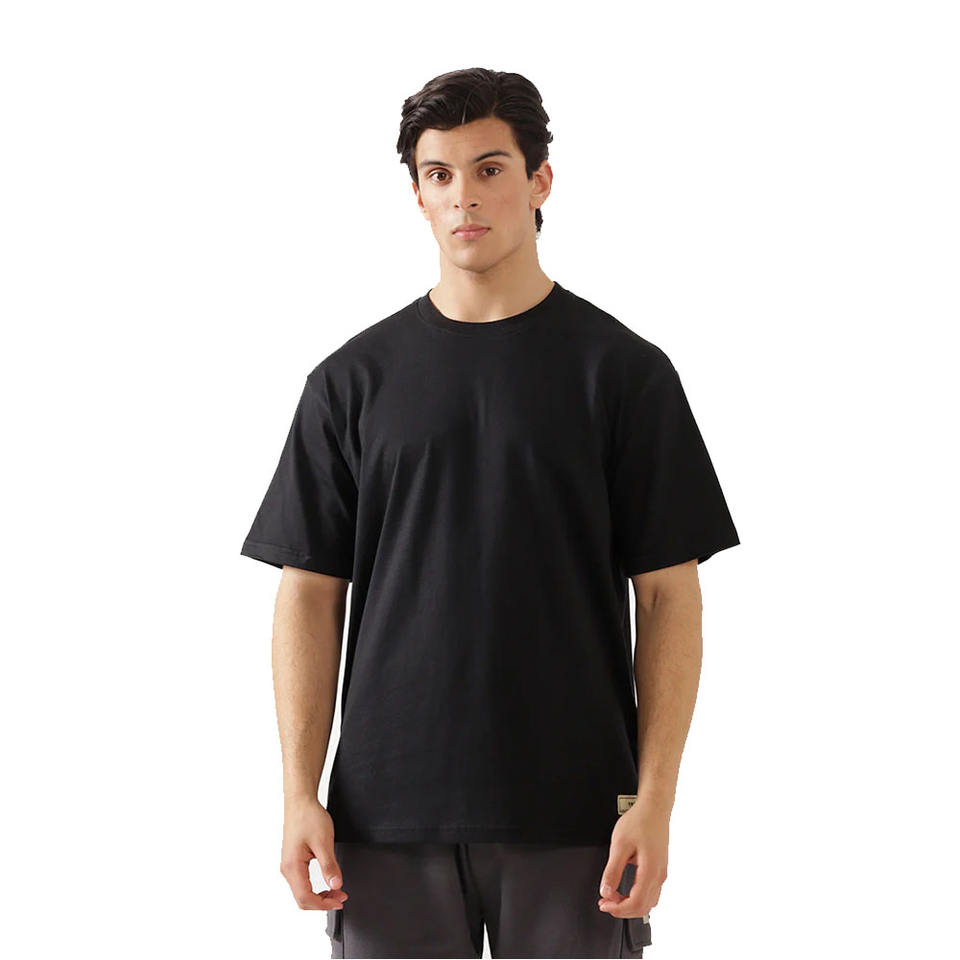 เสื้อยืดผ้าฝ้ายออร์แกนิกของผู้ชายสินค้าออก2024เสื้อยืดสีดำ100% ถักไหล่ปล่อยแกรมคอร์มีโครงออกแบบโลโก้ได้ตามต้องการ