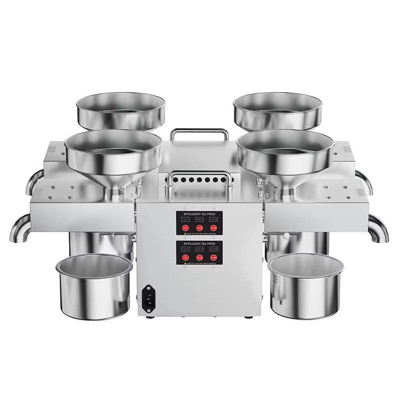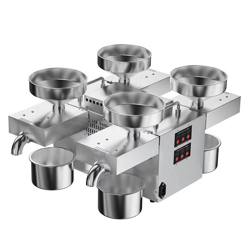 เครื่องกดน้ำมันอัตโนมัติ 4 หัว ปี 2024 พร้อมความทนทานของสแตนเลส รองรับการกดแบบเย็นและแบบร้อน สำหรับน้ำมันมะกอก/ถั่วเหลือง