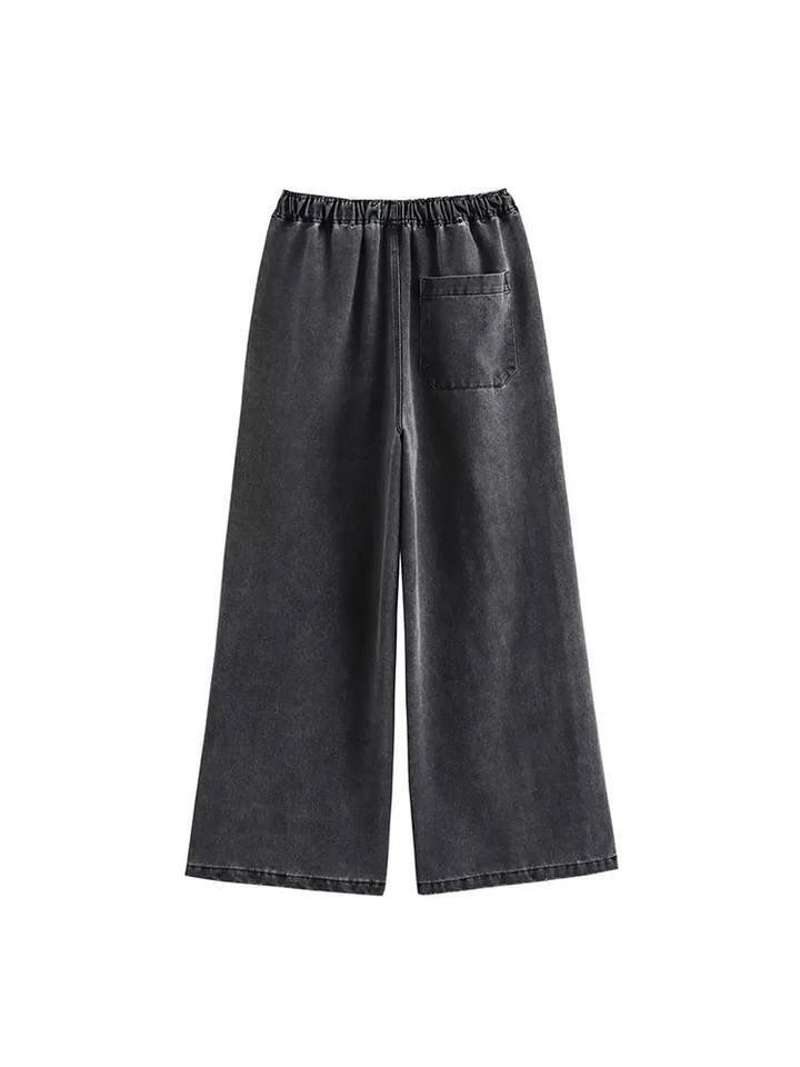 ชุดกางเกงยีนส์2024ฤดูใบไม้ร่วงผู้หญิงชุดสองชิ้นเสื้อลำลองคอปกพับลงเอวสูงกางเกงผ้ายีนส์ผู้หญิง