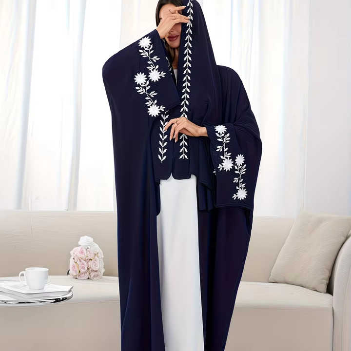 ชุดอาบายะห์สตรีแบบดั้งเดิมของอิสลามสีดำสวยงาม ปี 2024 จากซาอุดีอาระเบีย ประดับด้วยลูกปัดและเลื่อม งานแฮนด์เมด ผ้าโพลีเอสเตอร์ระบายอากาศได้ดี แขนยาว