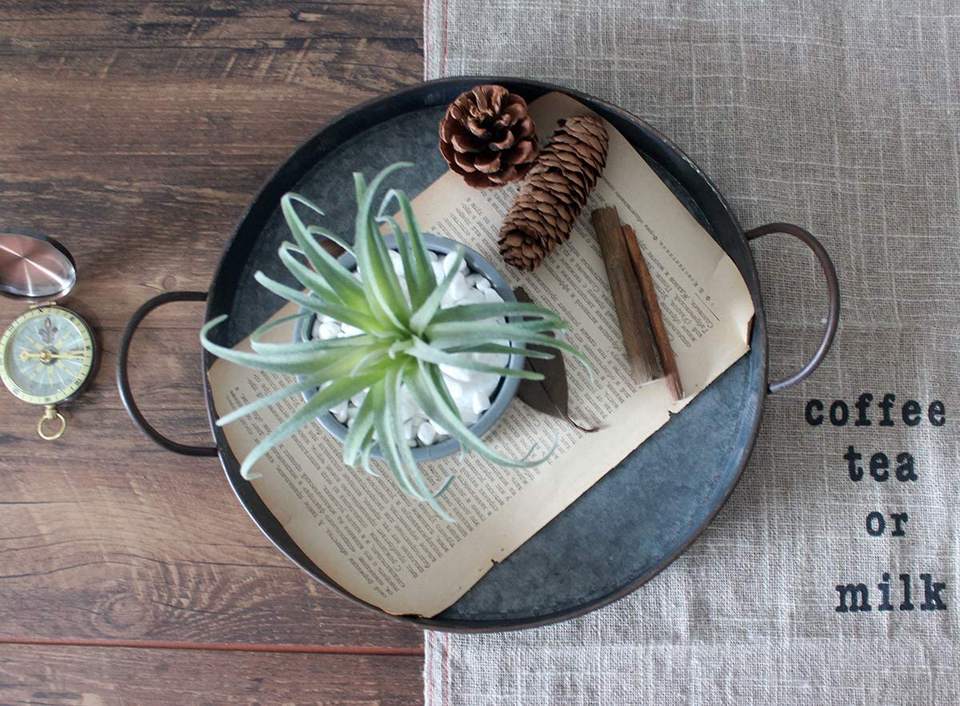 2024ที่จับถาดโลหะชุบสังกะสีทรงกลมทำด้วยมือสำหรับบ้านโรงแรมบาร์งานแต่งงานเครื่องใช้บนโต๊ะอาหาร