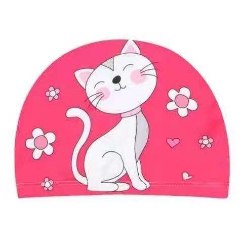 หมวกว่ายน้ำโพลีเอสเตอร์สำหรับเด็กหมวกว่ายน้ำลายการ์ตูนสีสันสดใส2024ออกแบบโลโก้ได้ตามต้องการ