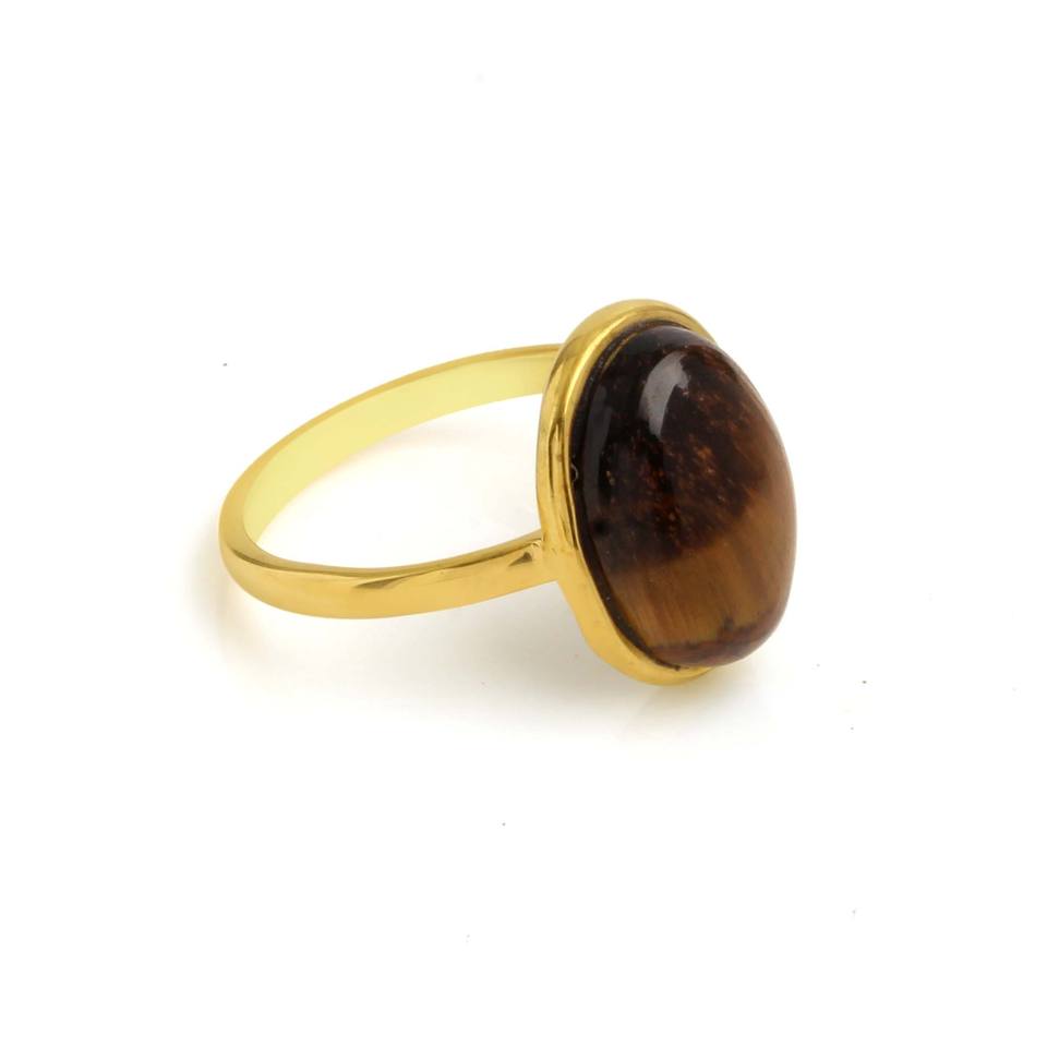 Product Name:Natural Tiger Eye Smooth Oval Shape Sterling Silver Bezel Ring