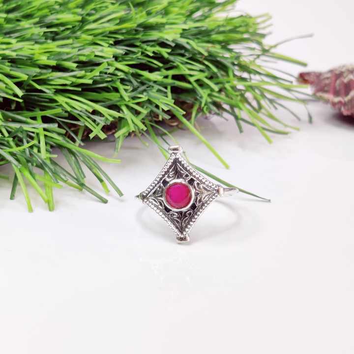 แหวนเงินแบบคลาสสิก2024ขายดีที่สุดพร้อมอัญมณีทับทิมของขวัญสำหรับงานแต่งงานหรือวันครบรอบปีที่สมบูรณ์แบบสำหรับเธอ