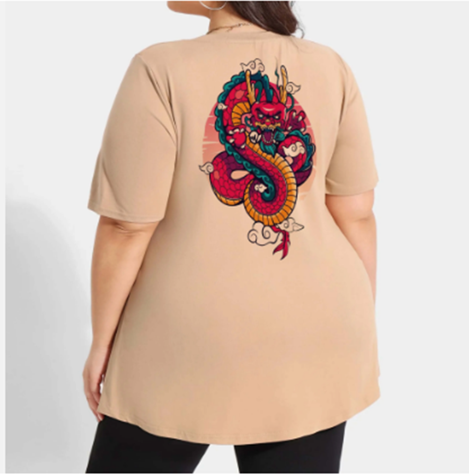 2024เสื้อยืดผ้าฝ้ายระบายอากาศได้ดีของผู้หญิงใหม่ขนาด XL ชุดเดรสพิมพ์ลายสกรีนลายตามสั่งฤดูร้อนย้อมสีล้วนแบบถัก