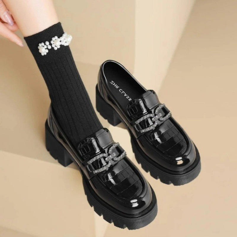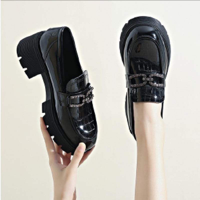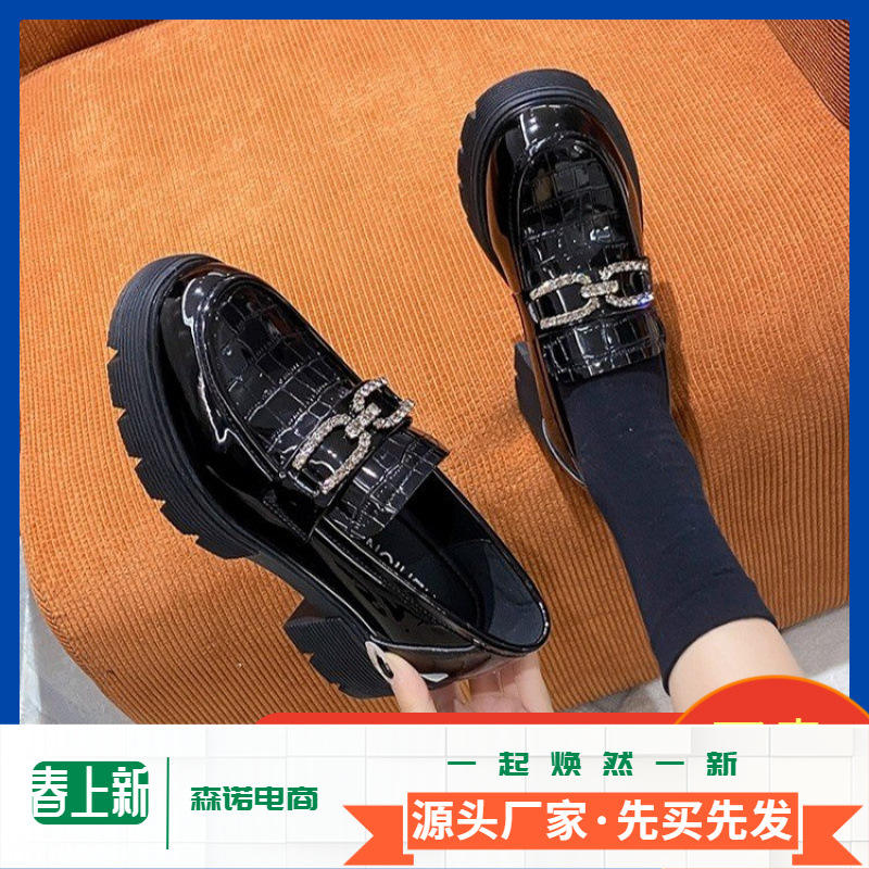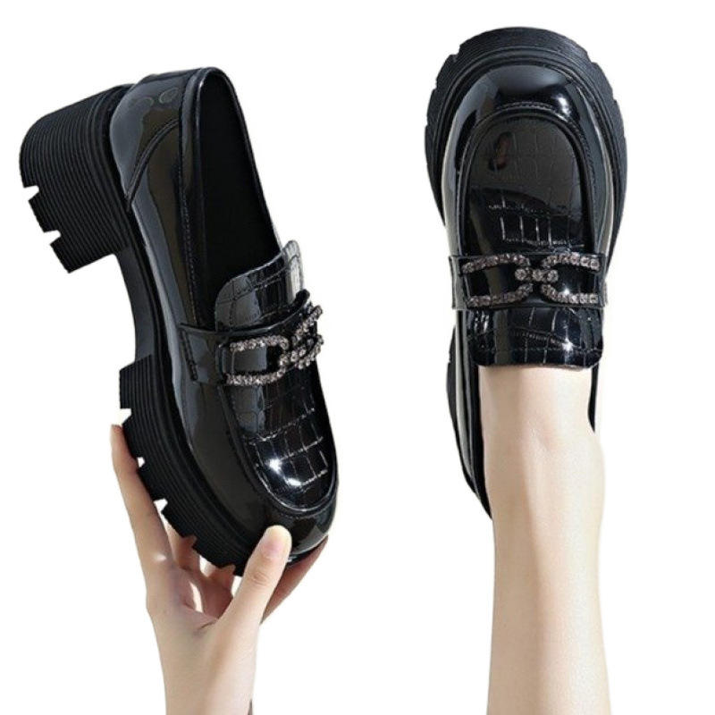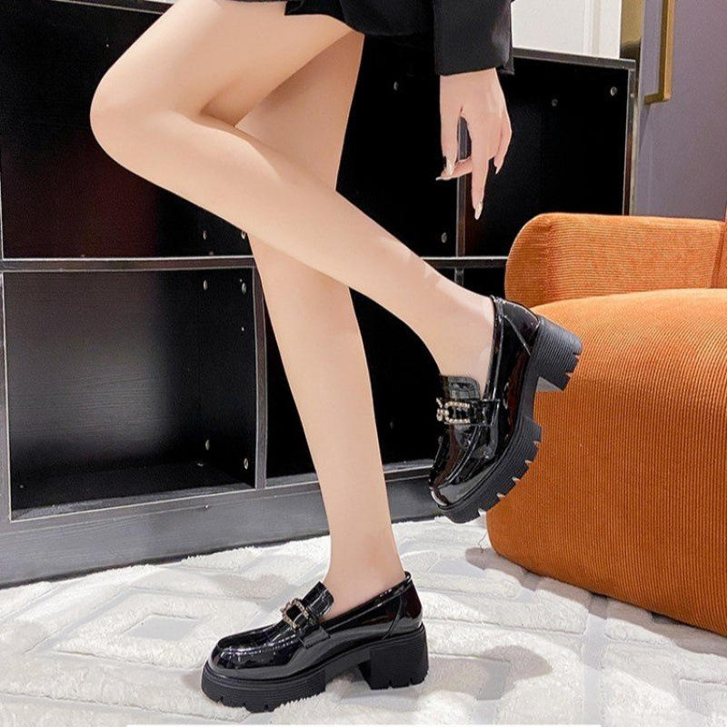 รองเท้าโลฟเฟอร์หนังสิทธิบัตรสำหรับผู้หญิงสไตล์อังกฤษ2024พื้นรองเท้ากำมะหยี่ขนาดเล็กพื้นหนาขายดีสำหรับฤดูใบไม้ผลิฤดูหนาว