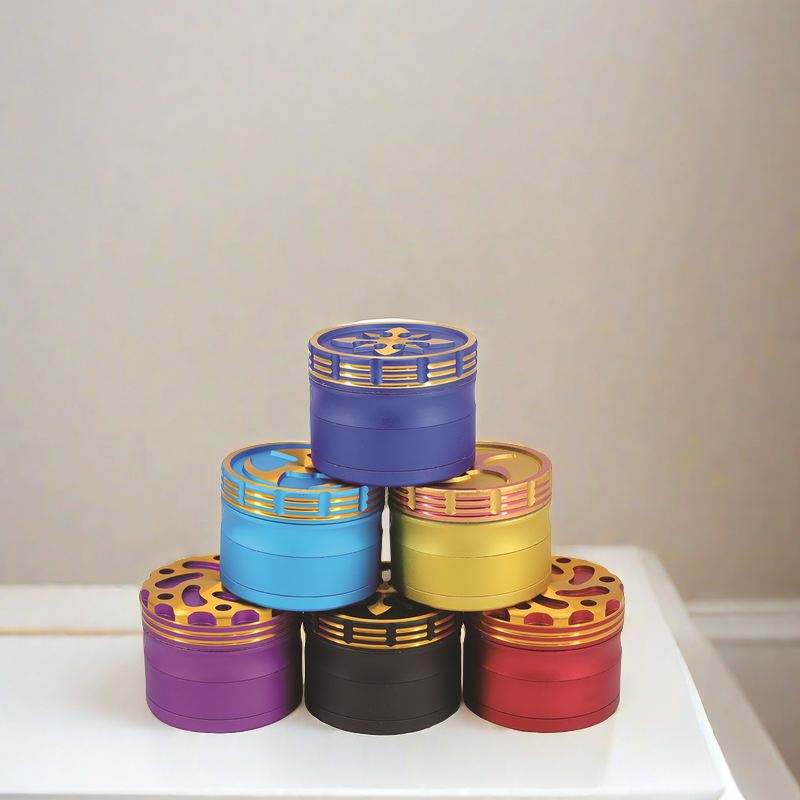 เครื่องบดสมุนไพรอะลูมิเนียมแกะสลัก ปี 2024 แบบ 4 ชั้น ขนาด 63 มม. เครื่องบดโลหะคุณภาพพรีเมียม รุ่น Dart
