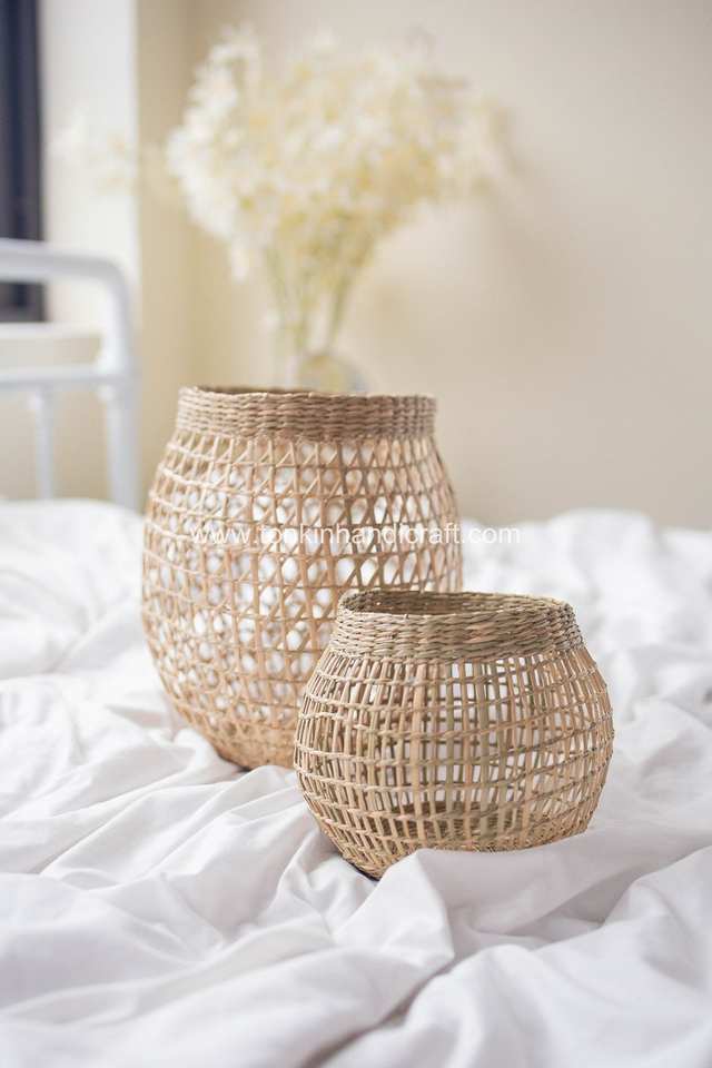 2024เทียนจากหญ้าทะเลแบบธรรมชาติสำหรับบ้านร้านอาหารโรงแรมทำจากเวียดนามขายส่งเชิงเทียนจากหญ้าทะเล