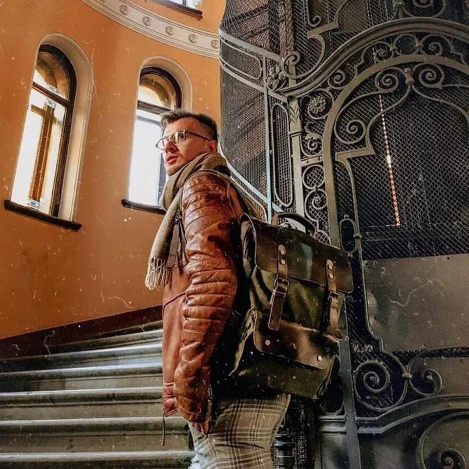 2024 Custom Brown PU Leather Men's Backpack OEM Wholesale Fashion Design with Charging Anti Features New Cheap Style