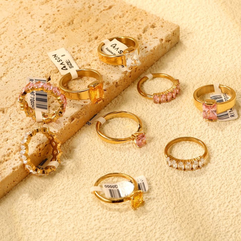 แหวนแต่งงานแฟชั่นดีไซน์เนอร์สั่งทำปี 2024 ขายส่งเครื่องประดับผู้หญิง สแตนเลสชุบทอง 18K ประดับเพชรทรงสี่เหลี่ยม หลายขนาด