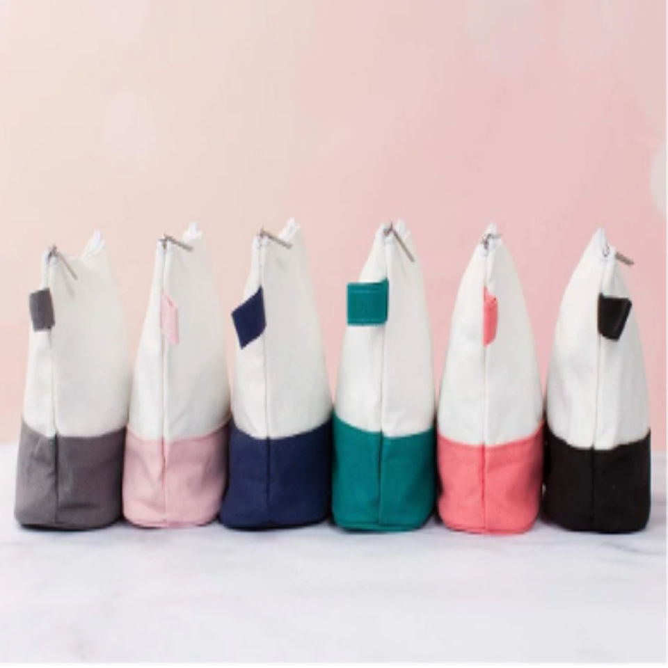 กระเป๋าเครื่องสำอางผ้าแคนวาสขนาดเล็กเป็นมิตรกับสิ่งแวดล้อมกระเป๋าเครื่องสำอางผ้าคอตตอนสีสันสดใสออกแบบโลโก้ได้ตามต้องการ2024