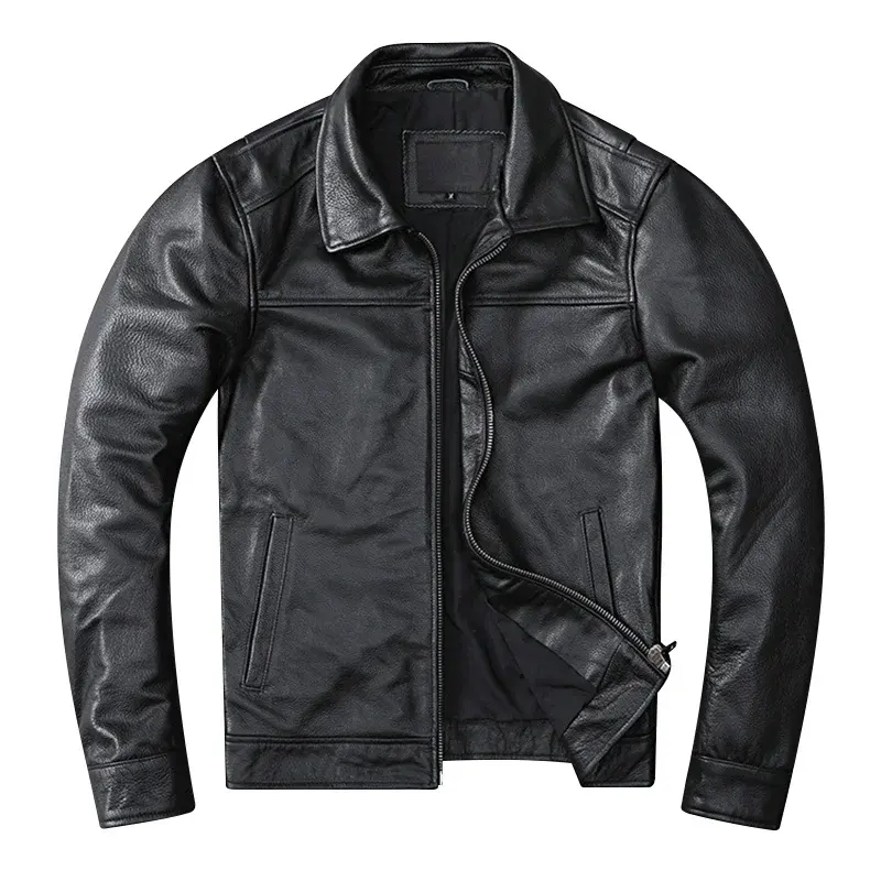 เสื้อแจ็คเก็ตหนังแท้สำหรับผู้ชายแขนยาวเข้ารูปเสื้อแจ็กเก็ตหนังแฟชั่นฤดูใบไม้ผลิออกแบบโลโก้ได้ตามต้องการแบบ2024