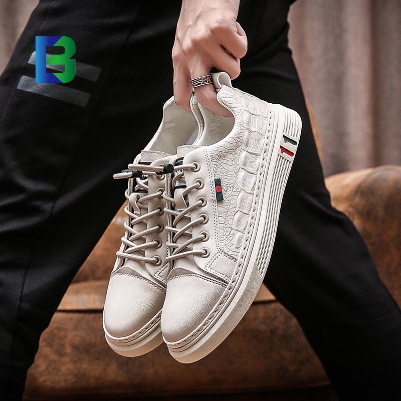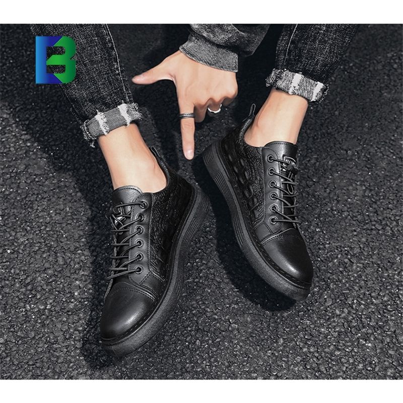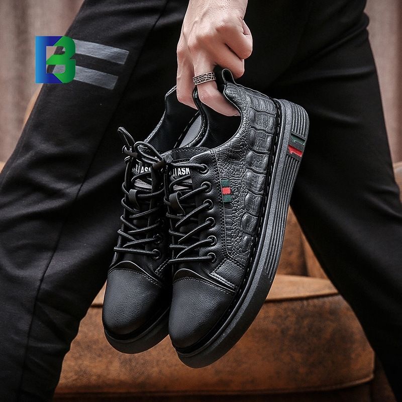 2024 โลโก้ที่กําหนดเองกลางแจ้งใหม่แฟชั่นBreathableหนังรองเท้าผ้าใบลําลองผู้ชายสีดํารองเท้าผ้าใบสําหรับชายกีฬา
