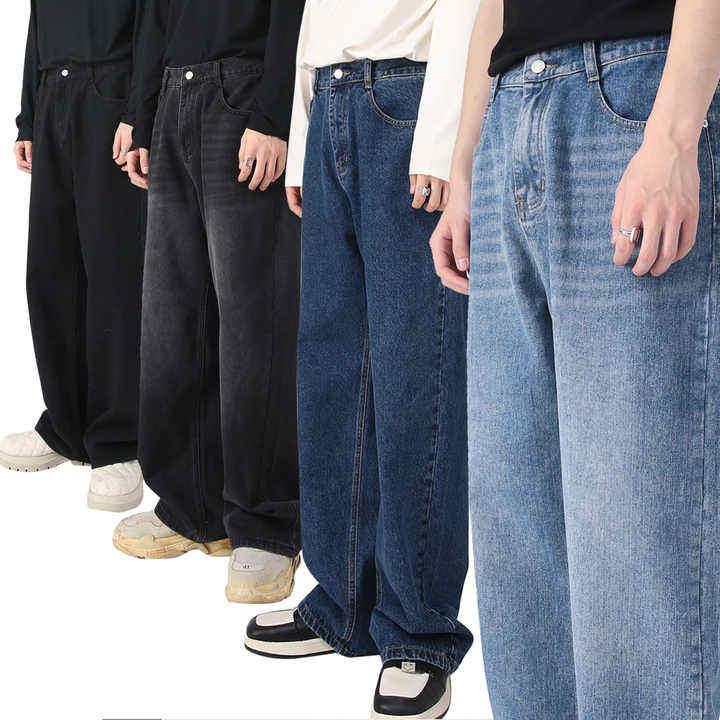 กางเกงยีนส์ทรงหลวมขาตรงของผู้ชายทรงหลวมตรงทรงหลวมสีฟ้าอ่อนสำหรับใส่2024ออกแบบได้ตามต้องการ