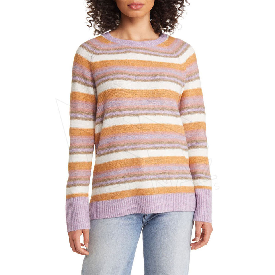 สเวตเตอร์ถักแบบสวมหัวคอวีสำหรับผู้หญิงเสื้อถักแบบสวมศีรษะแขนยาวผ้าแจ็คการ์ดงานตามสั่ง2024