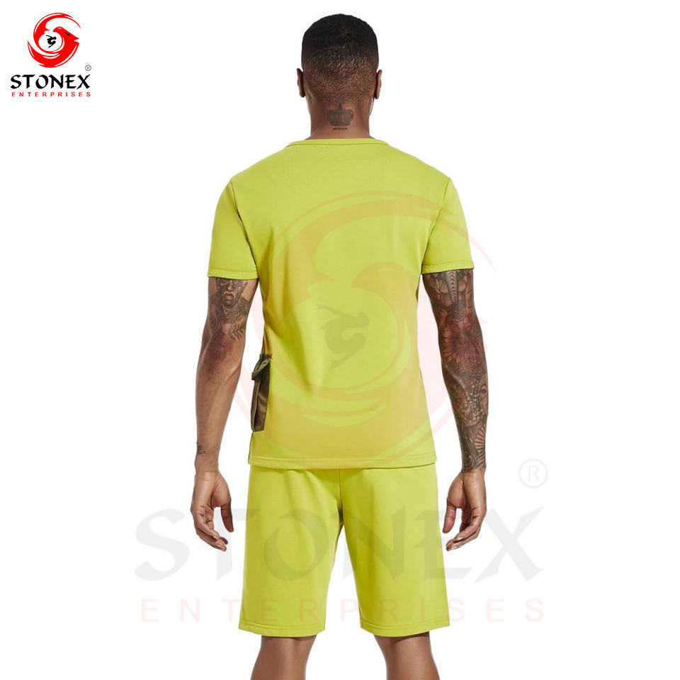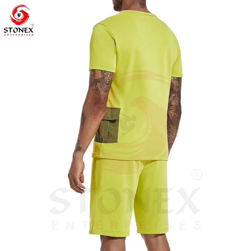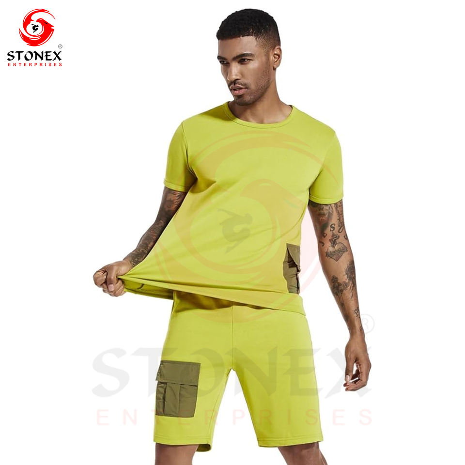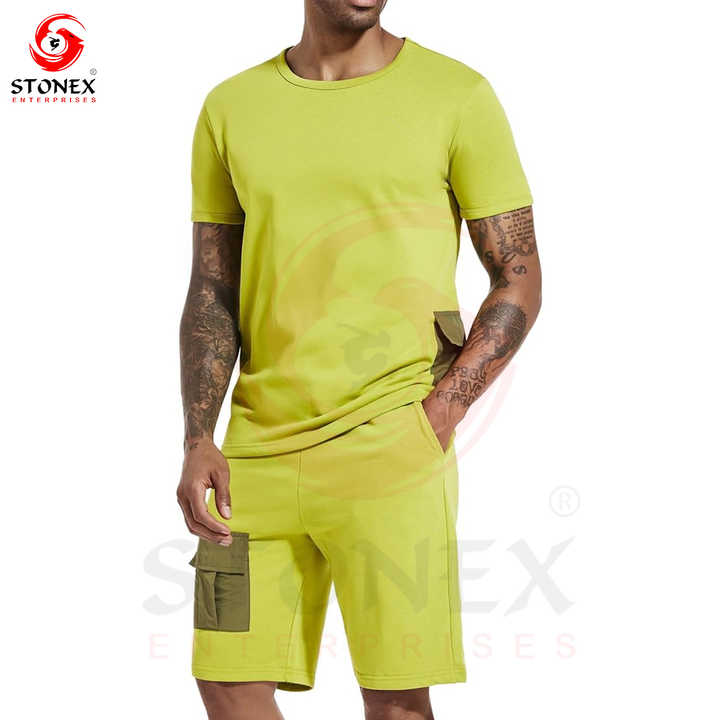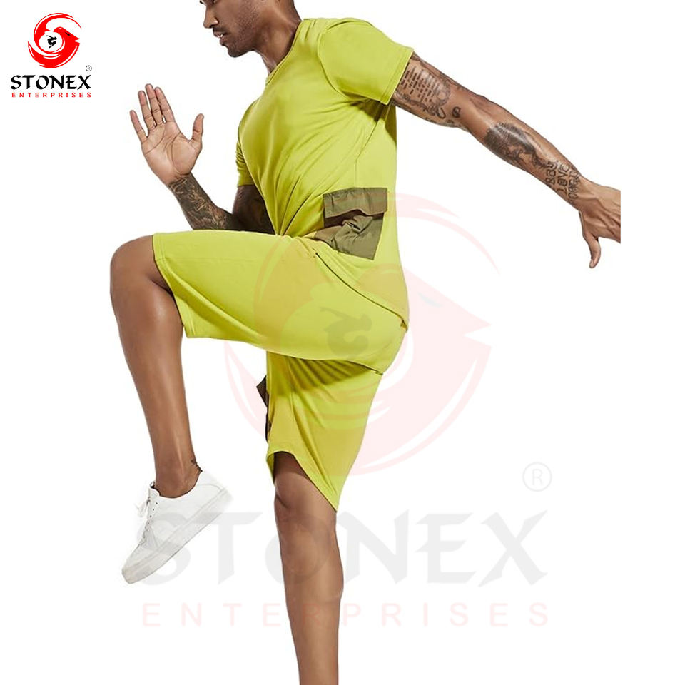 เซ็ตชุดวอร์มกางเกงขาสั้นสองชิ้นสำหรับผู้ชายชุดวอร์มเล่นกีฬาทำจากโพลีเอสเตอร์ออกแบบได้ตามต้องการสำหรับฤดูร้อน2024