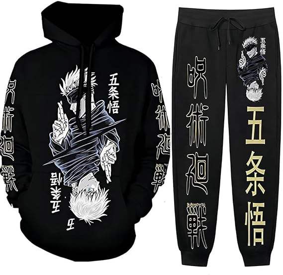 ชุดวอร์มเทรนนิ่งแบบสวมใส่สบาย ปี 2024 ลายอนิเมะ ซาโตรุ โกโจ ชุดสองชิ้น เสื้อฮู้ดดี้สำหรับผู้ชาย