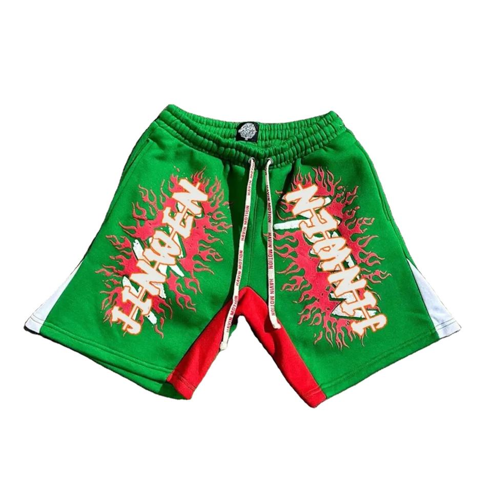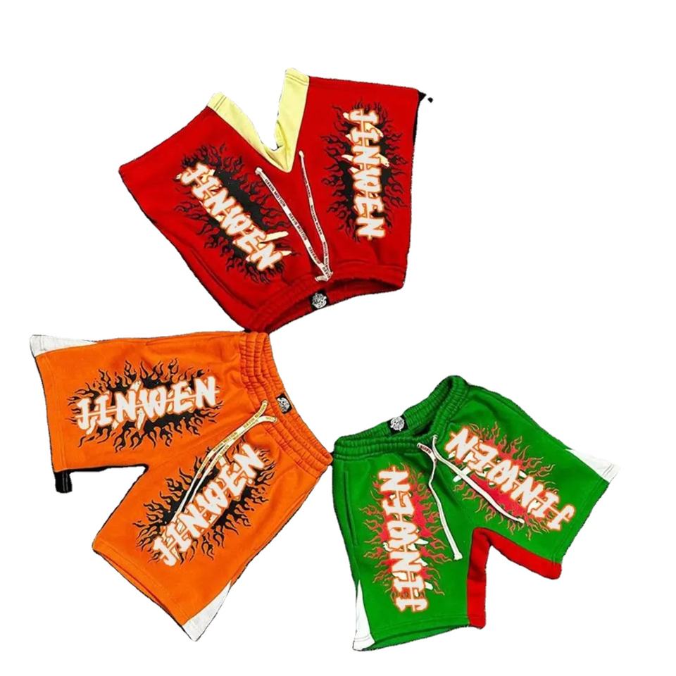 กางเกงขาสั้นพิมพ์ลายสกรีนแบบกำหนดเองสำหรับฤดูร้อนปี 2024 ผ้าฝ้ายฟลีซคุณภาพสูง เอวยางยืดแบบมีเชือกผูก