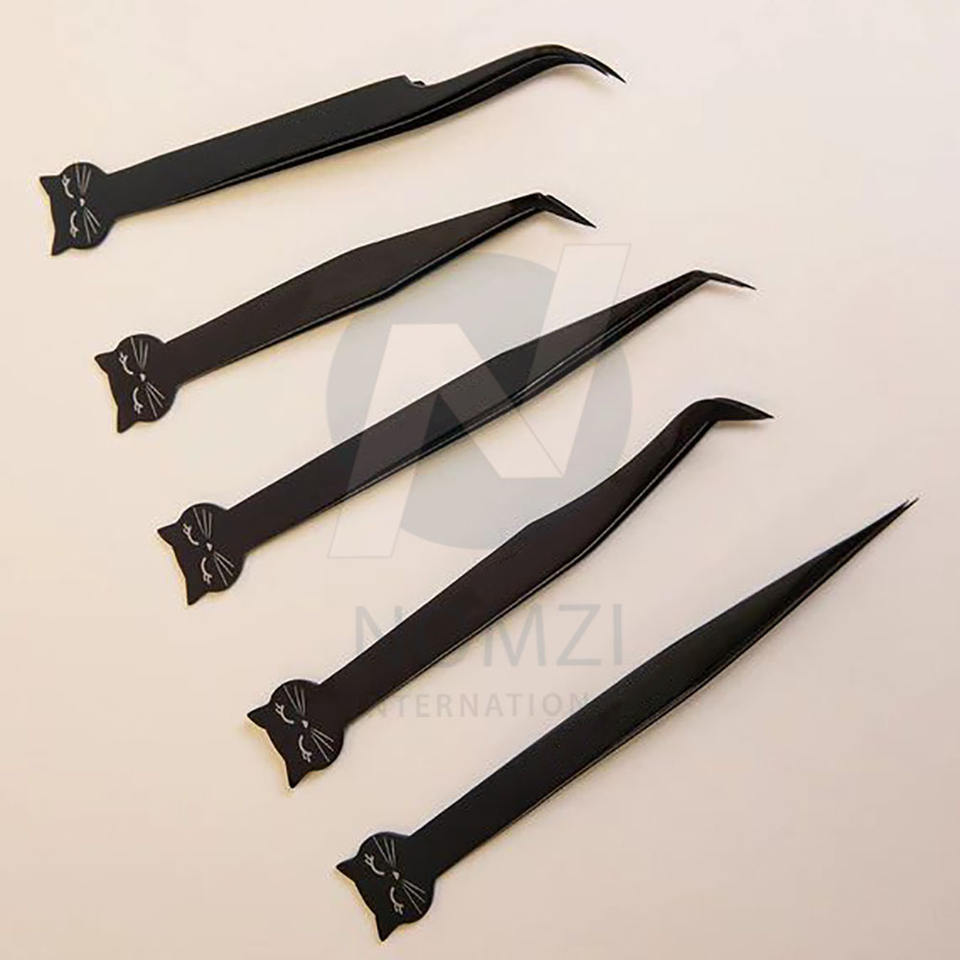 แหนบคีบขนตาสแตนเลสปลายแหลมวัสดุที่ยั่งยืน2024พิมพ์โลโก้แบบใหม่ล่าสุดสำหรับคิตตี้