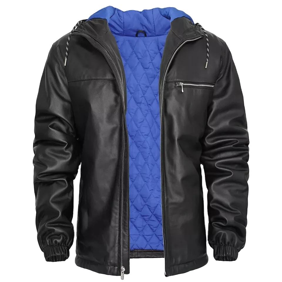 แจ็กเก็ตหนังแกะสำหรับผู้ชาย, แจ็คเก็ตหนังวัวกันน้ำมีฮู้ดเหมาะสำหรับฤดูหนาวปรับแต่งได้มีซิปปิดสำหรับรถจักรยานยนต์