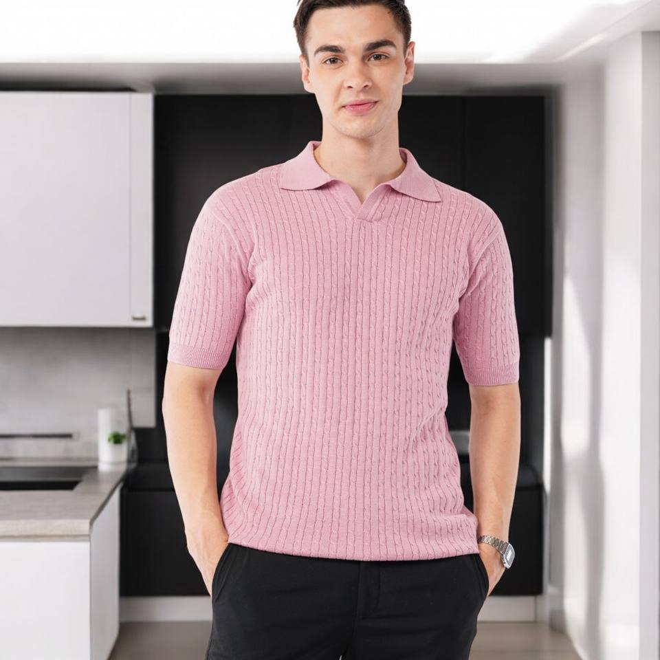 เสื้อโปโลสำหรับผู้ชายสั่งทำตามแบบได้2024เสื้อยืดคอตตอนถักลายทางทรงสลิมฟิตแบบปัก