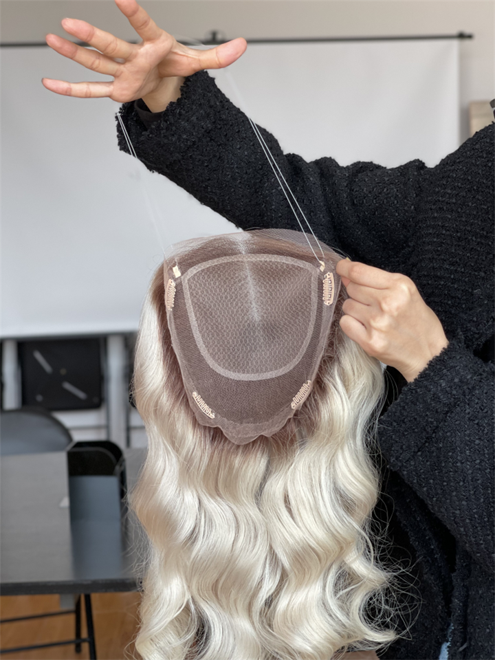 2024หนังกําพร้าชิดวิกผมดิบออกแบบใหม่Body Waveผสมผมปมเดี่ยวOmbreสีสําหรับผมร่วงผู้หญิงสีขาว