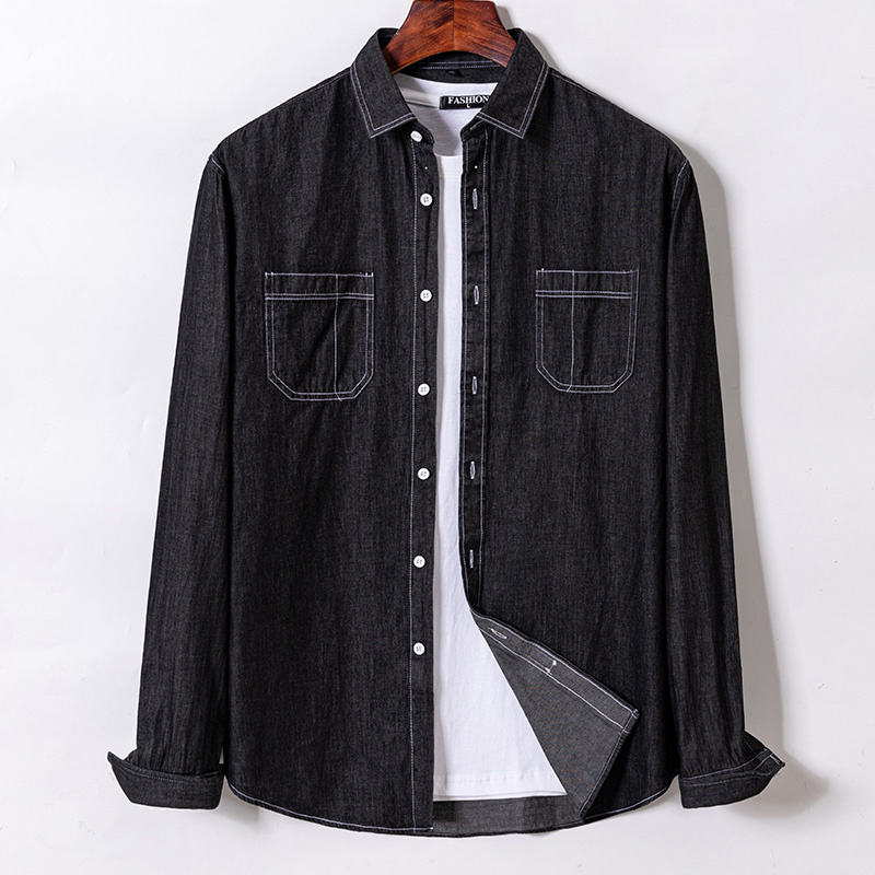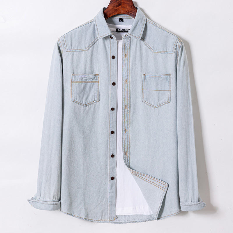 เสื้อเชิ้ตเดนิมผู้ชายผ้าฝ้ายแท้ 100% รุ่นคลาสสิค ปี 2024 พร้อมกระเป๋าปักลาย สวมใส่สบาย แขนยาว แฟชั่น-ไซส์ 2-39M