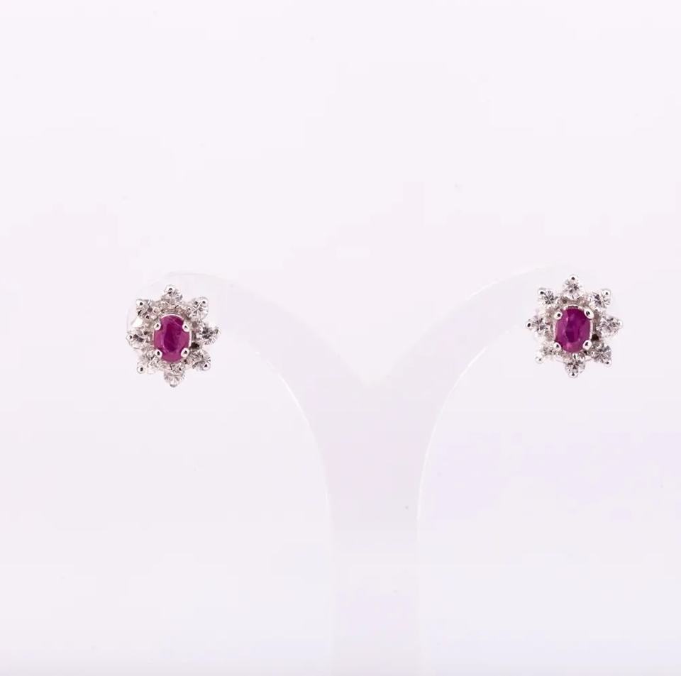 ทับทิมรูปไข่4X3มม. 2ชิ้นและ1.9มม. กลมสีขาวบุษราคัม16ชิ้น