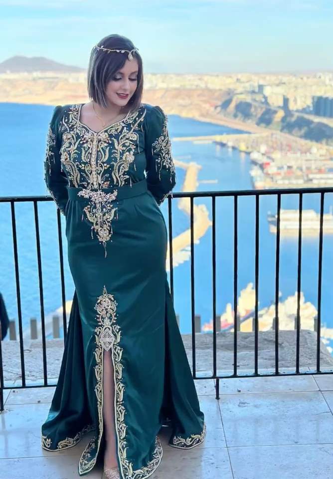 ชุดเดรส caftan สีเขียวใส่ในงานปักลายขวดดีไซน์2024ด้วยผ้าไหมสีทองสวยงามชุดปาร์ตี้มีสไตล์ใหม่สำหรับงานแต่งงาน
