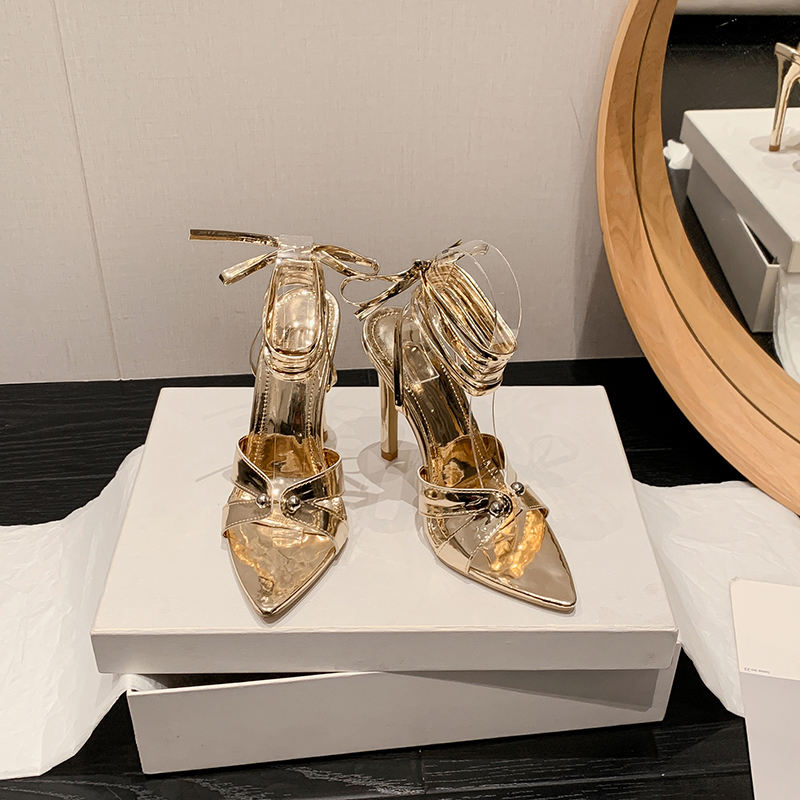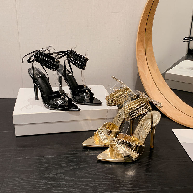 รองเท้าส้นสูงแบบรัดส้นสไตล์ยุโรป อเมริกัน และยุโรปแบบริเวทครอสสแตรป ปี 2024 ไซส์ 35-41