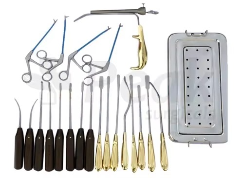 ชุดเครื่องมือผ่าตัดยกกระชับใบหน้า ปี 2024 ทำจากเหล็กกล้า ใช้สำหรับการผ่าตัดเสริมความงาม ยกกระชับคิ้ว ด้วยเครื่องมือโลหะแบบส่องกล้อง และตะไบจมูก